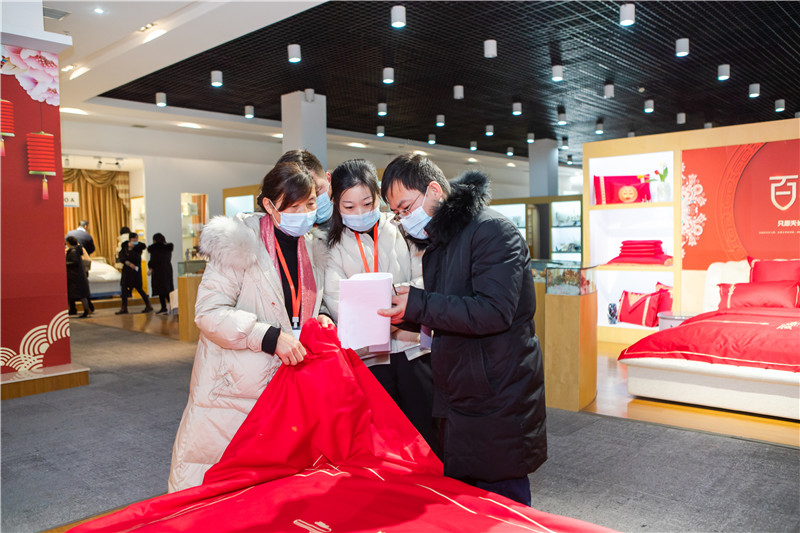 之后,资深家纺设计师为在座嘉宾从产品的特征、结构、性能和卖点等方面分享了际华家纺2021春夏新品发布会主推的11个系列产品产品,涵盖了套件、夏被、凉席、婚庆、枕芯等众多产品, 100支匹马棉四件套、3M/壳恩士/烟酰胺等新材料、新技术在家纺产品的运用,成为本次新品发布会的亮点。现场砸金蛋、抽奖等活动将发布会现场气氛推向高潮。