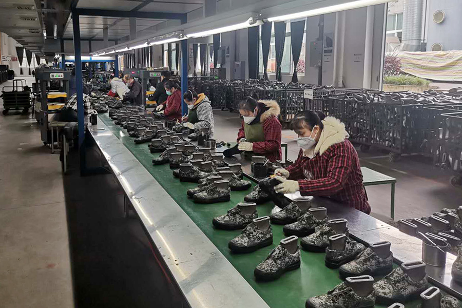 2月29日,3539公司400多名员工佩戴口罩,投入到紧张而有序的生产工作中。目前,公司5条生产线420余人,开足马力生产工矿靴、防砸靴、消防靴、作训鞋等产品,复工成型产能6300双/天,产能利用率达到76%左右,企业总体经营情况趋于良好。