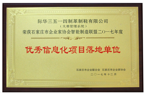 12月15日,石家庄市智能制造联盟2017年度总结会上,际华3514公司公司自主研发的“大赛管理系统”项目,荣获石家庄市企业家协会智能制造联盟二〇一七年度优秀信息化项目落地单位。